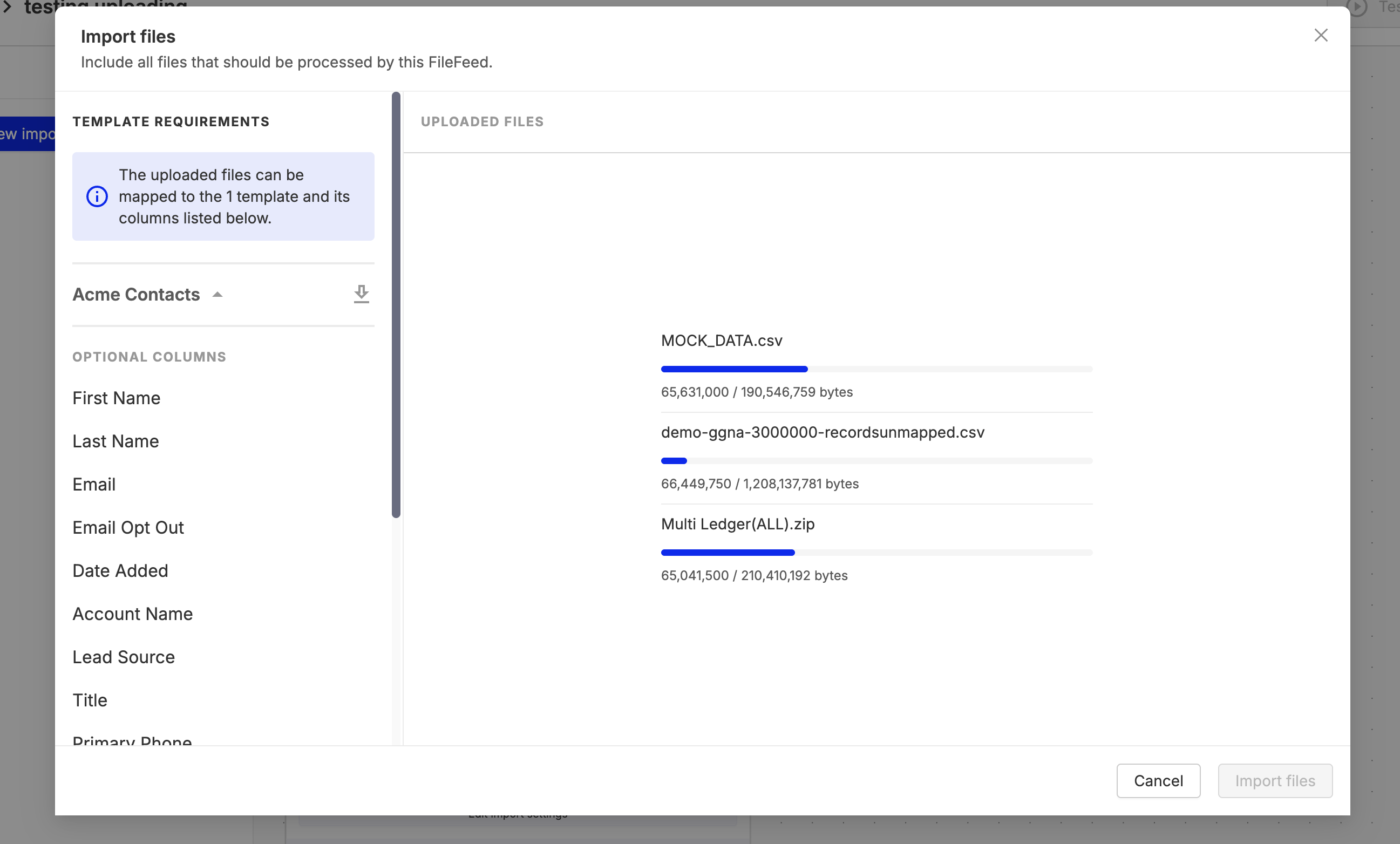 Uploads in Multi FileFeeds now show real-time, per-file progress with byte-level detail. Each file displays its own progress bar, giving you clear visibility into upload status. This is especially helpful for large or multi-file imports. This experience is available in both the Source Files node and the manual import flow, making uploads more transparent and reliable.