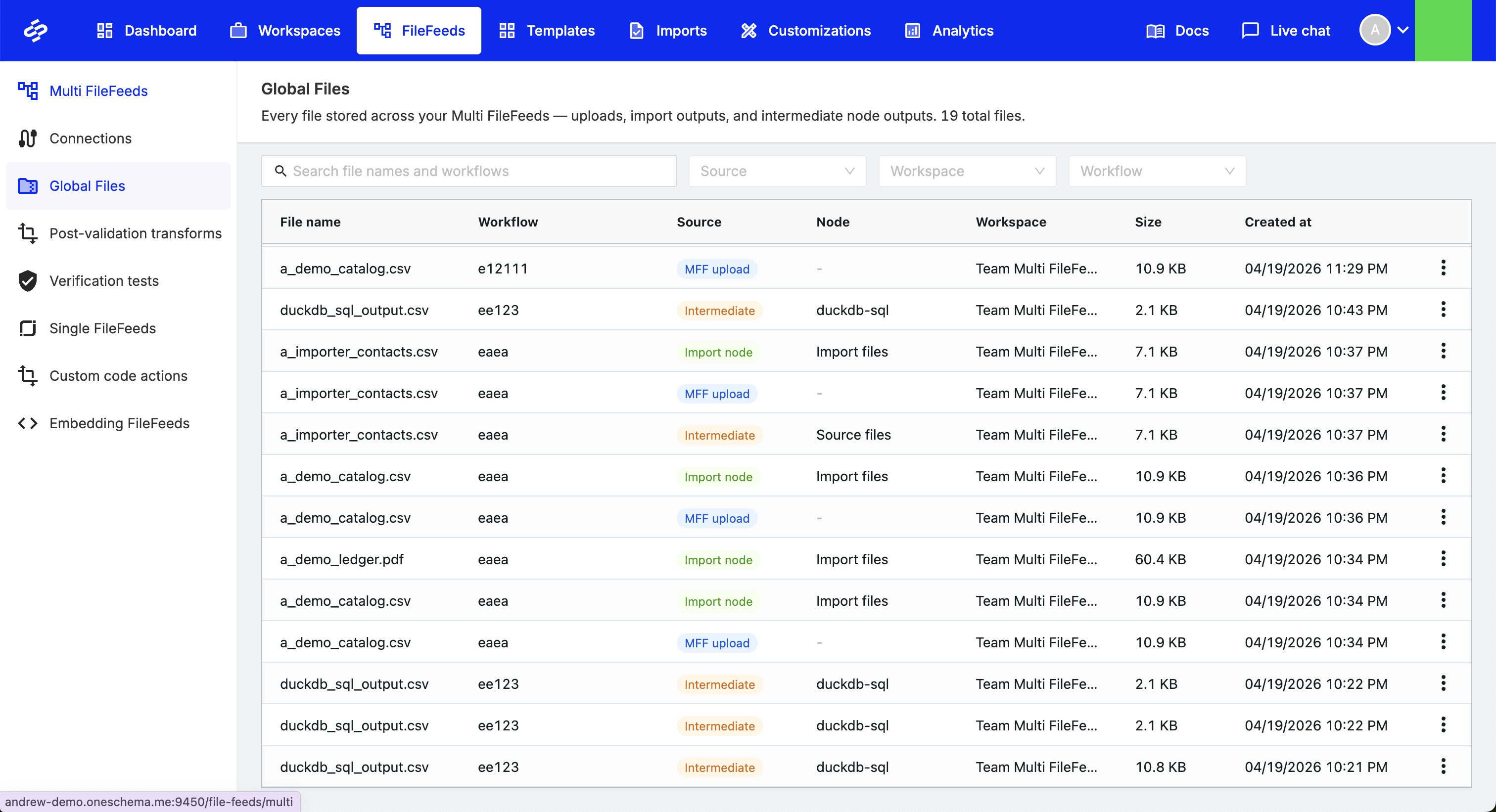 You can now access all files uploaded into Multi FileFeeds from a centralized Global Files view. This provides a single place to browse, download, and manage files across workflows, making it easier to track and operate on your file data at scale.